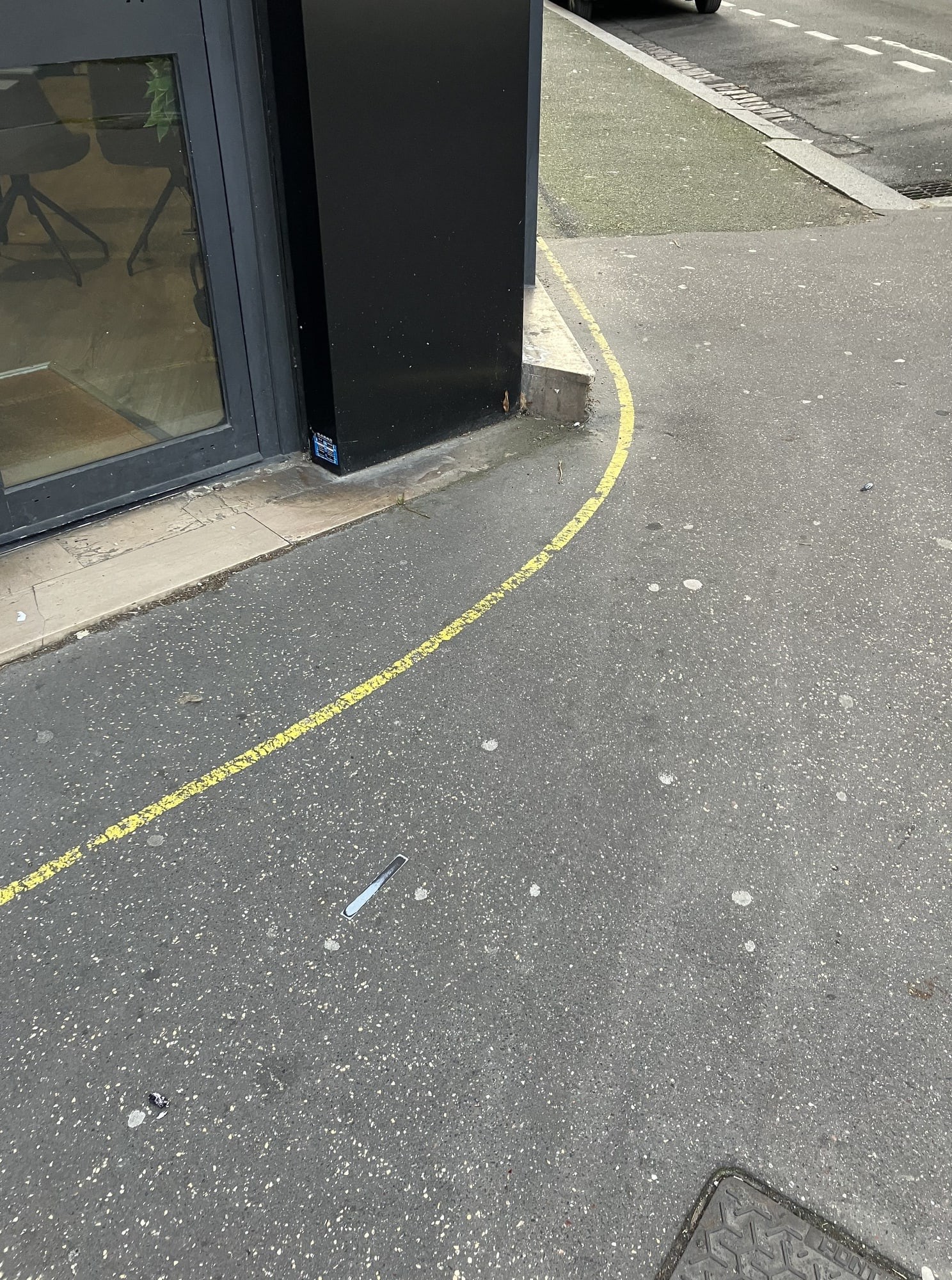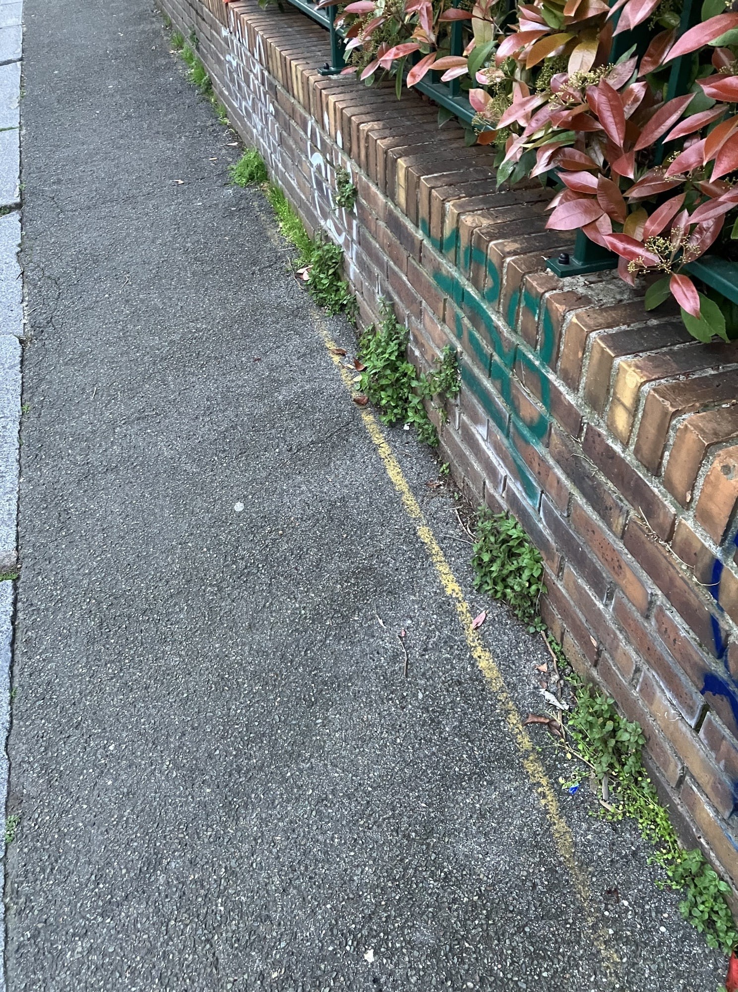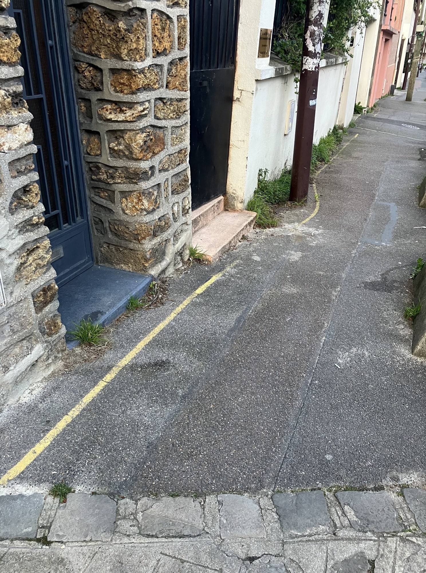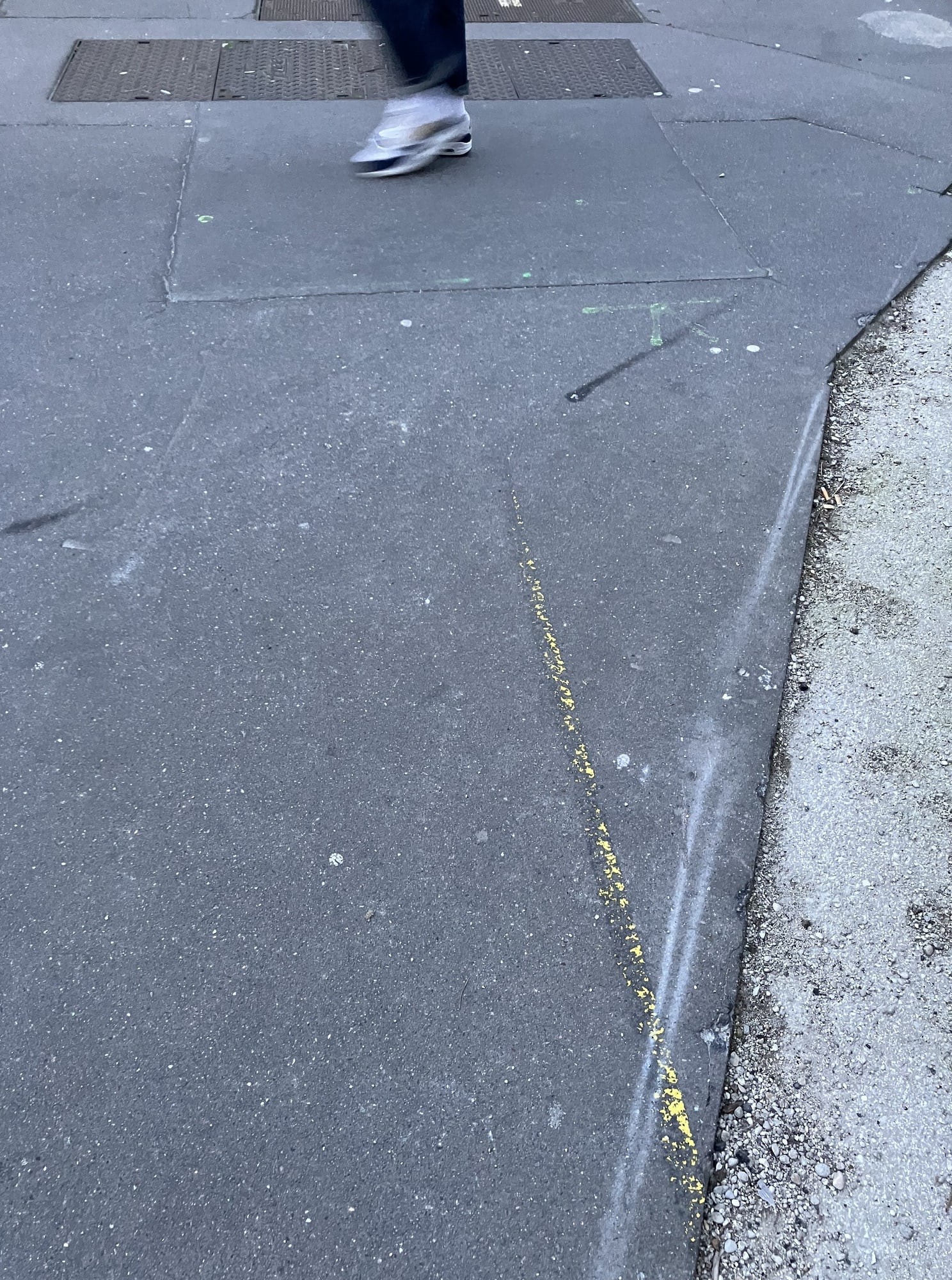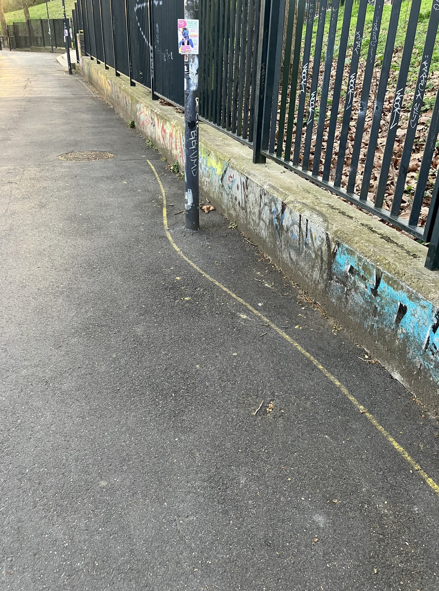 Il y a quelques temps je suis retombé sur un signe urbain que j’avais remarqué il y a dix ans quand je m’étais installé à Montreuil, sur lequel je m’étais un peu renseigné, mais je n’avais pas creusé plus loin. Le signe en question, c’est une ligne jaune, présente sur de nombreux trottoirs de la ville, et qui marquent une proposition de chemin : la Boucle des Trois Parcs.