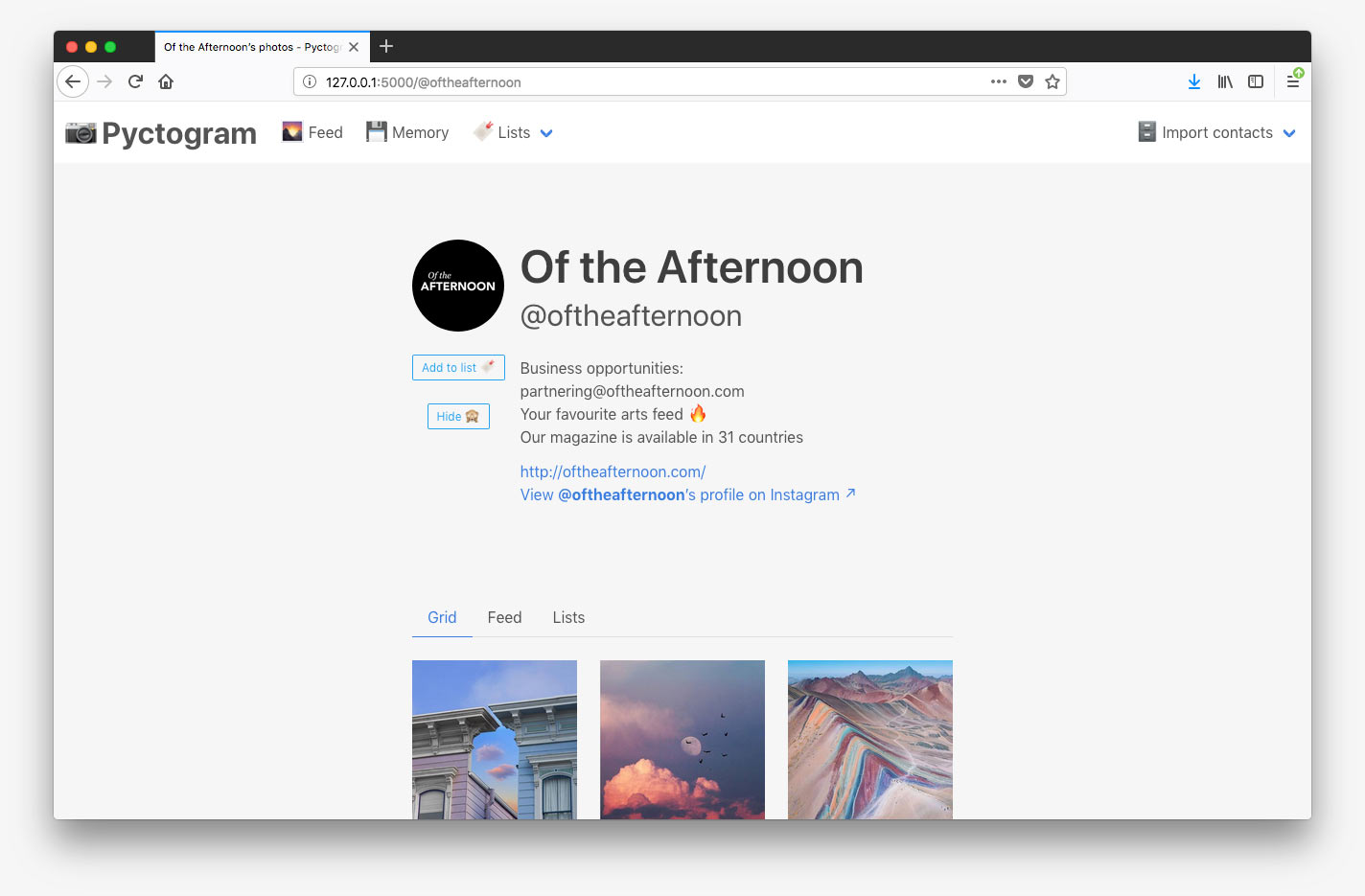 Oui, mais… pour suivre les publications de mes contacts encore sur Instagram, je fais quoi ? C’est là que la douche m’a été utile jeudi dernier : je me suis dit que je pouvais développer un outil, qui m’afficherait les photos.