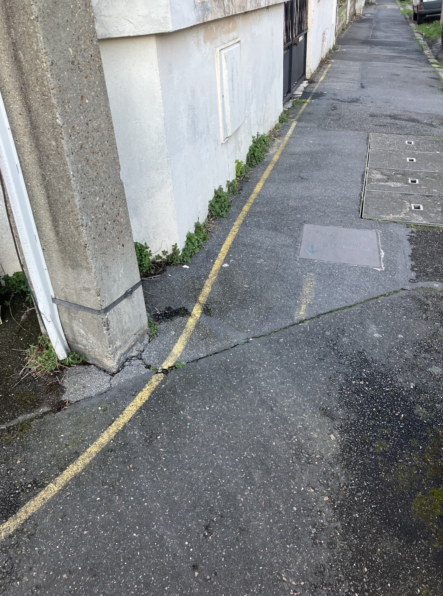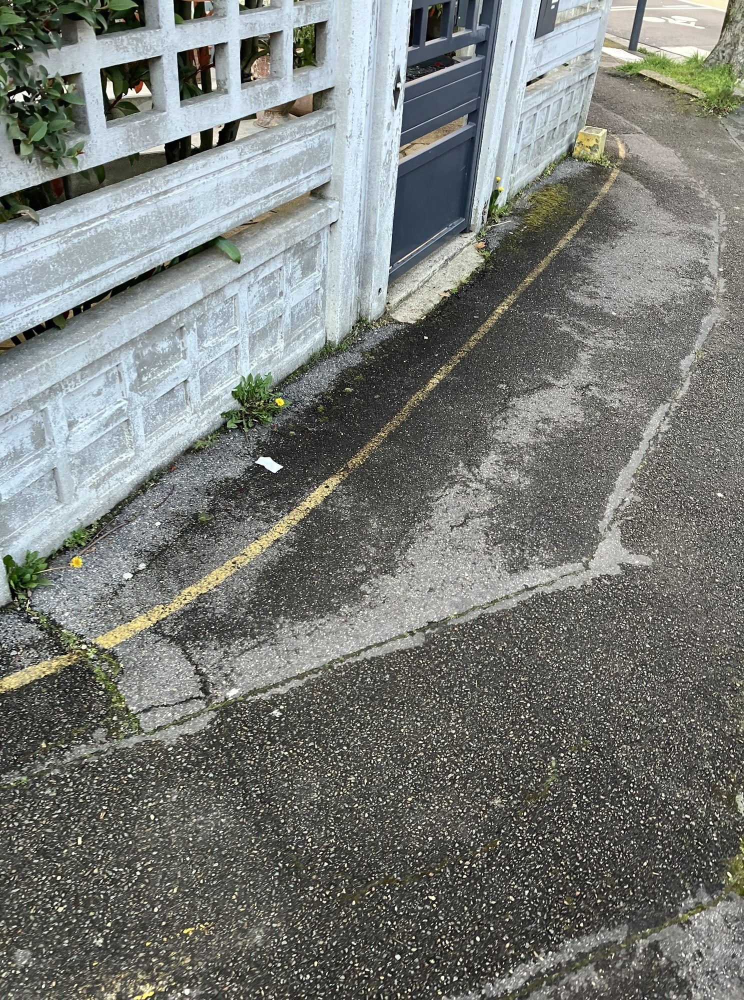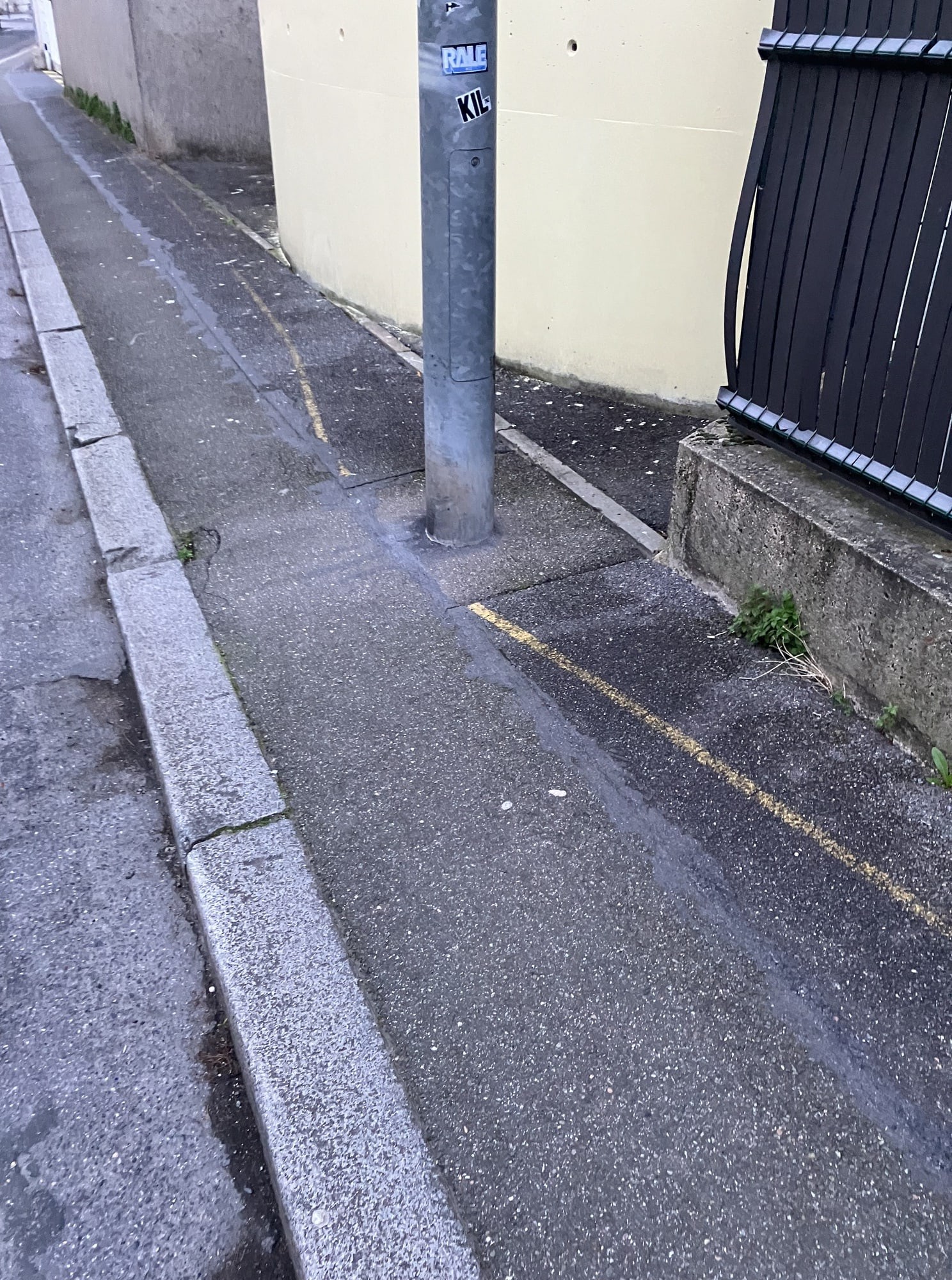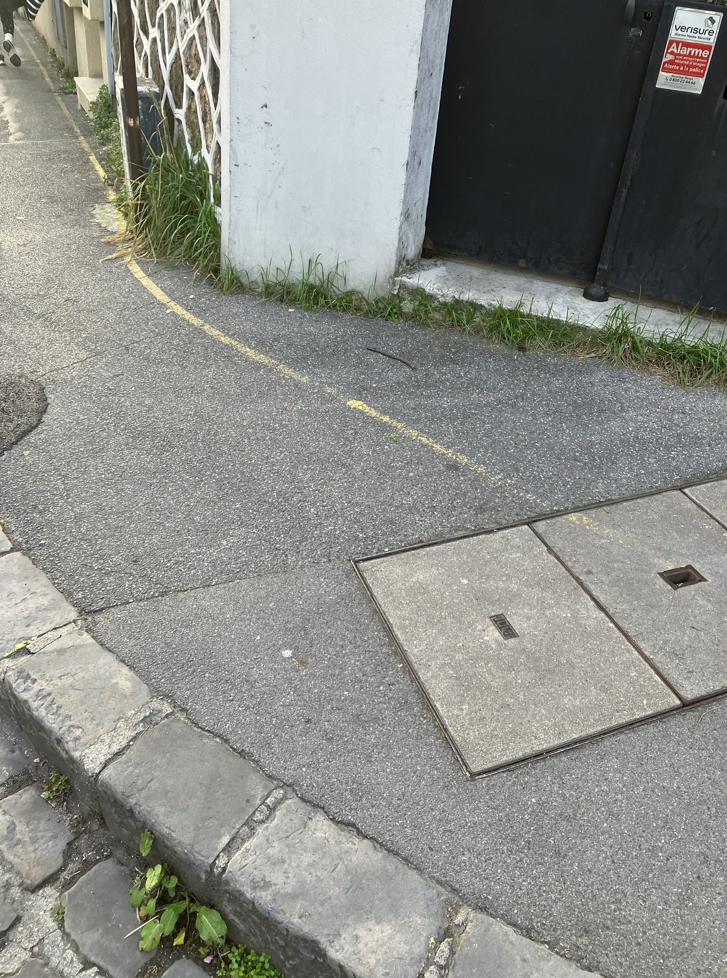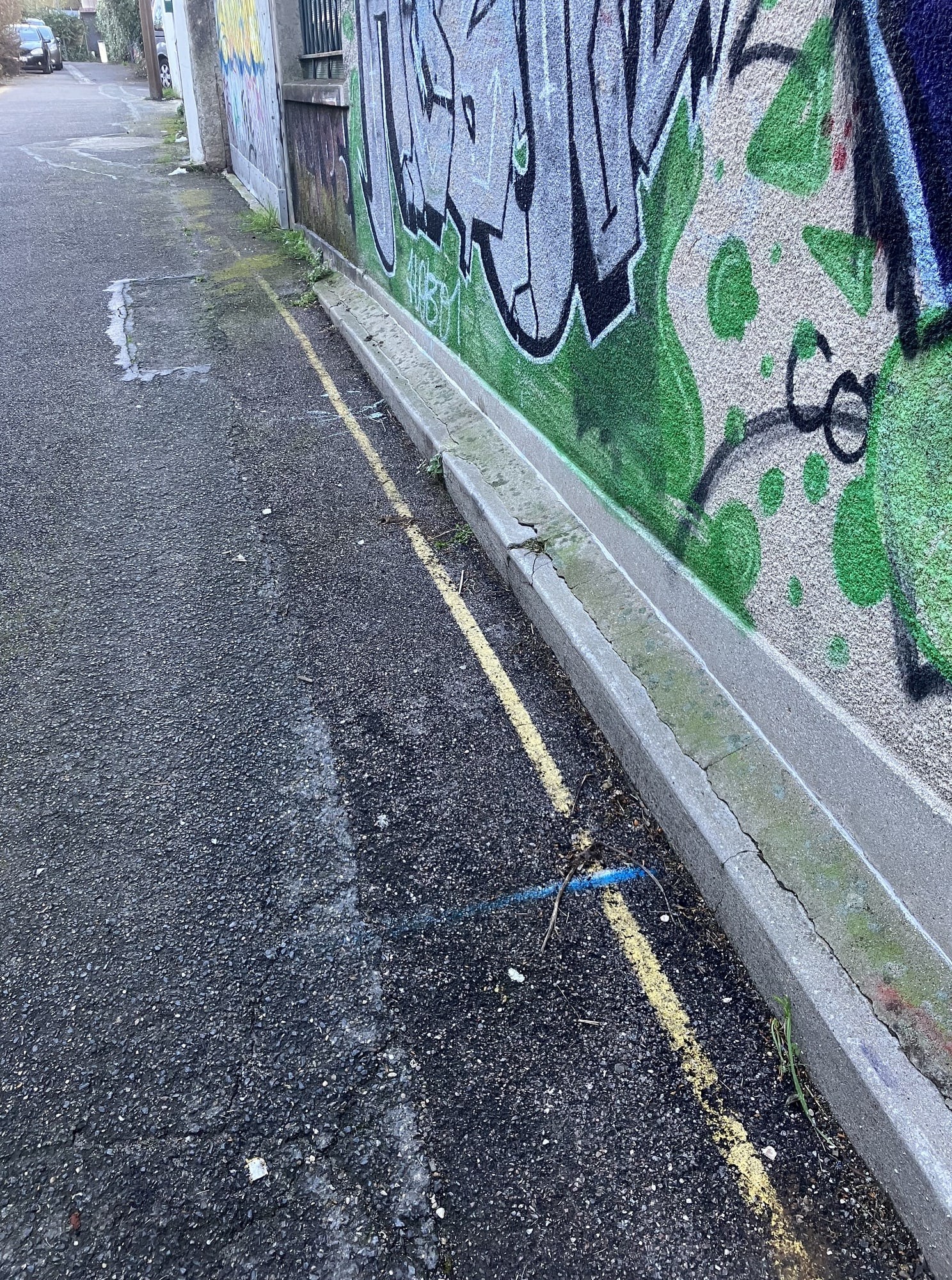 Il y a quelques temps je suis retombé sur un signe urbain que j’avais remarqué il y a dix ans quand je m’étais installé à Montreuil, sur lequel je m’étais un peu renseigné, mais je n’avais pas creusé plus loin. Le signe en question, c’est une ligne jaune, présente sur de nombreux trottoirs de la ville, et qui marquent une proposition de chemin : la Boucle des Trois Parcs.